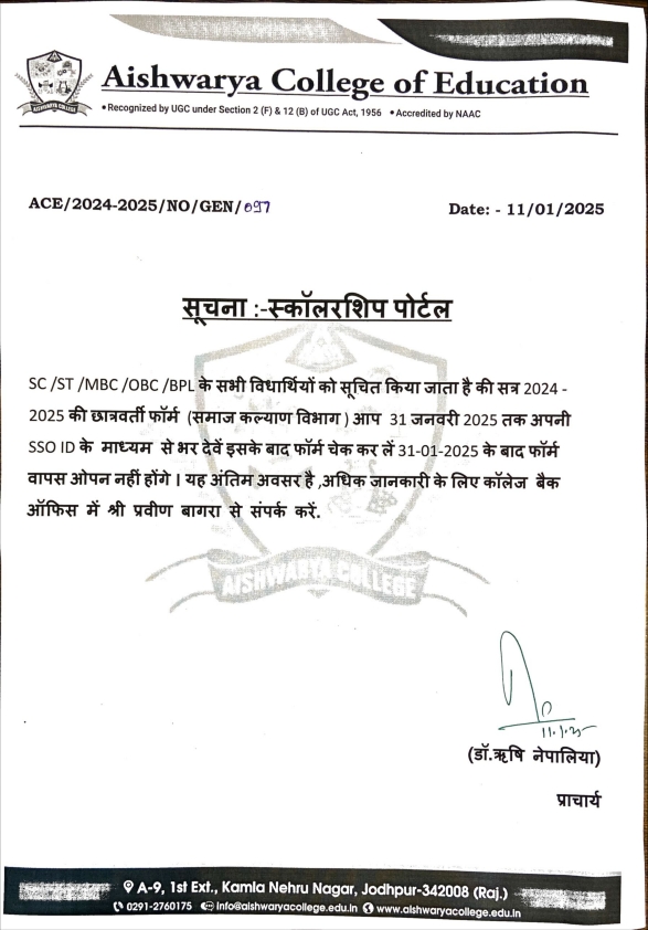 SCHOLARSHIP PORTAL NOTICE 2024-25