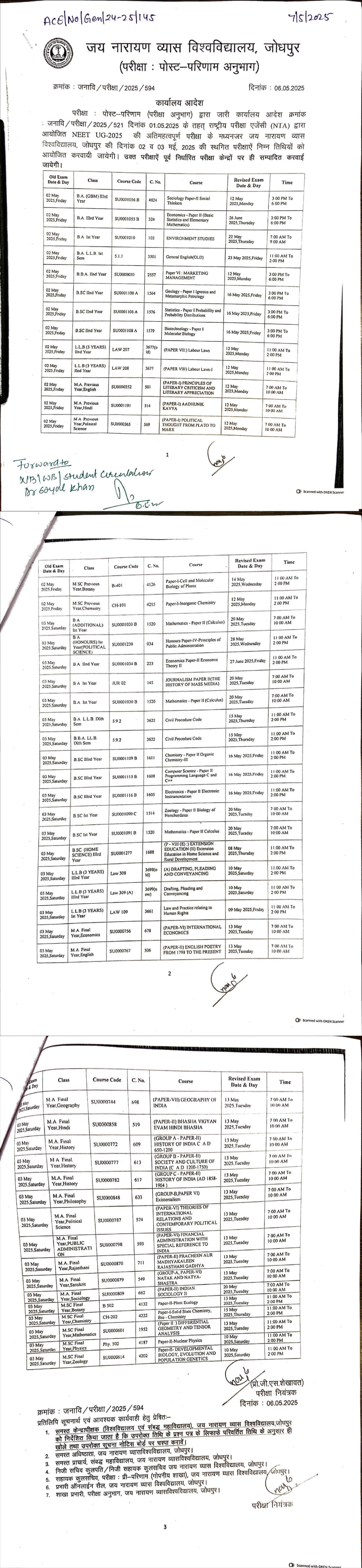 JNVU - Postpone Exam Reschedule Date - NOTICE 2024-25