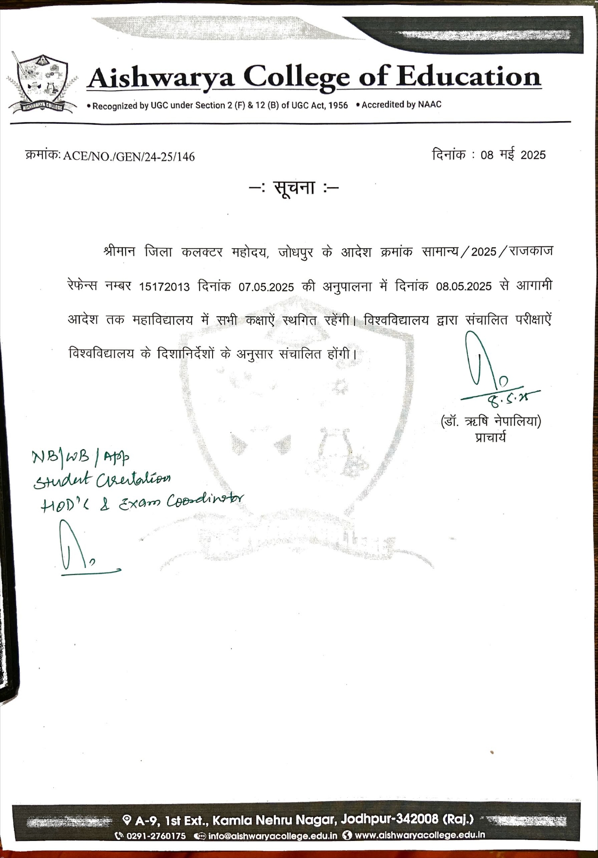 Regarding Suspansion Of Classes NOTICE 2024-25