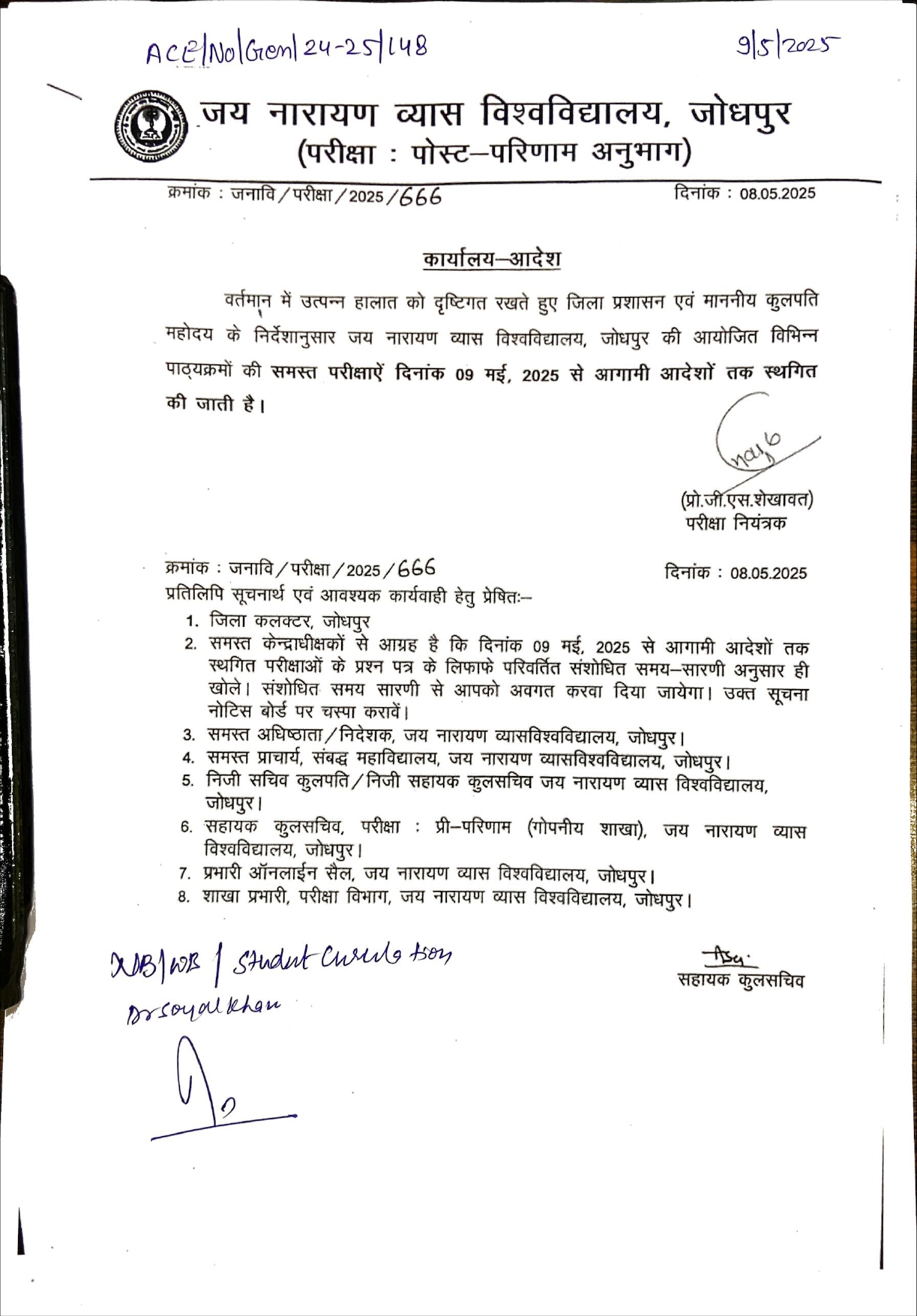 JNVU - Regarding Suspansion of Exam Notice 2024-25